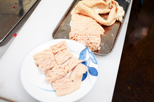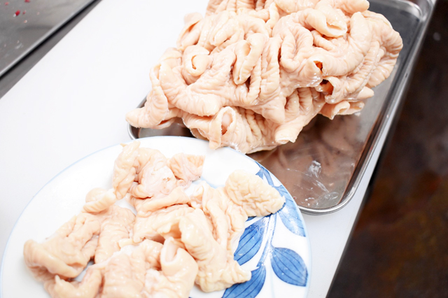 胃袋の部位。クセがなくコリコリした食感で煮込みのアクセントにオススメです。塩焼きも◎